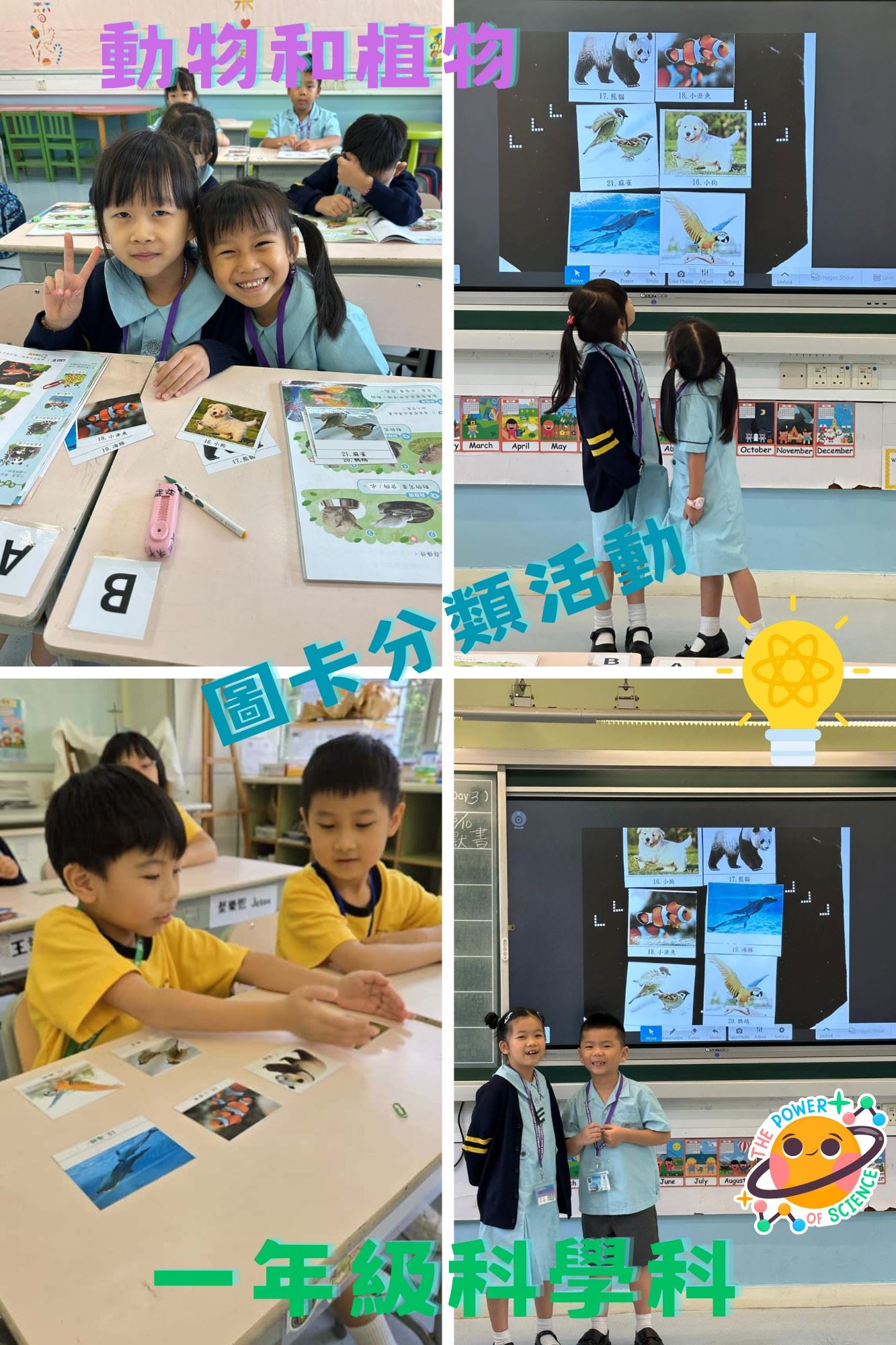一年級科學科小慈和小天在學甚麼﹖小慈和小天透過圖卡分類及成果匯報的方式,認識生物和非生物的分別及生物的多樣性及分類,並培養對生命的熱愛和尊重,以及保育環境的意識。