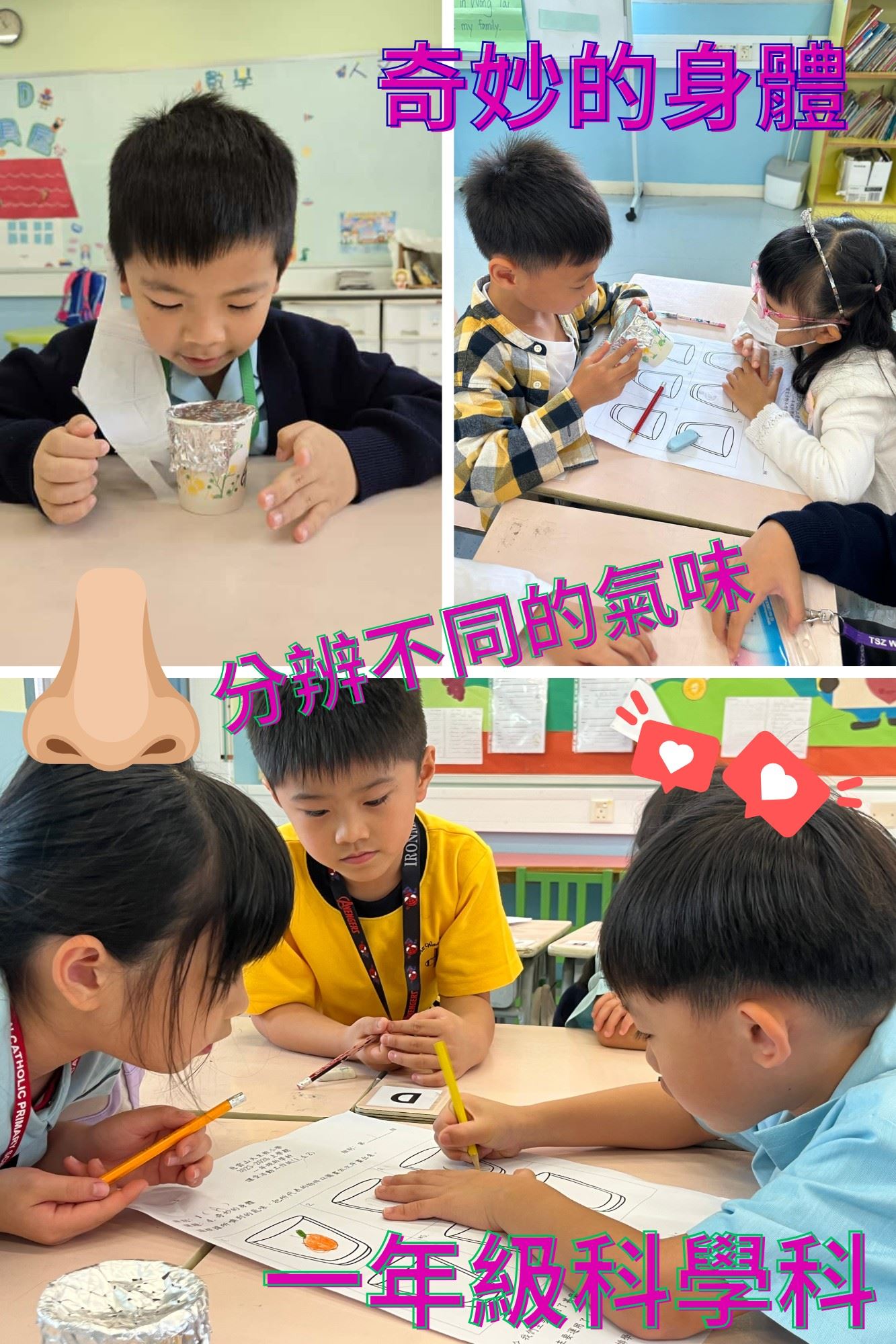 一年級科學科小慈和小天在學甚麼﹖小慈和小天在上課後能夠掌握基本的生命科學知識,透過動手做實驗,探究嗅覺能夠分辨不同的氣味,並培養學生保護身體的重要。