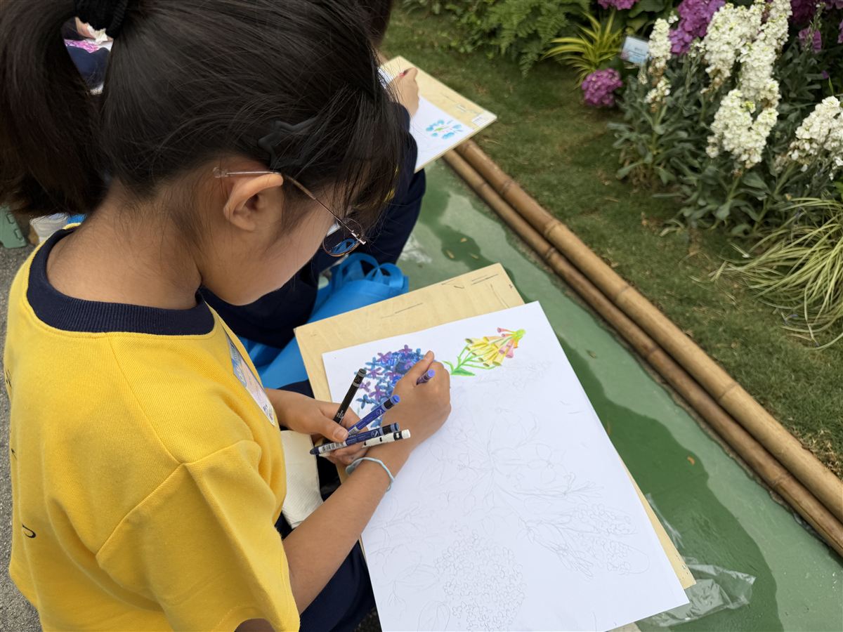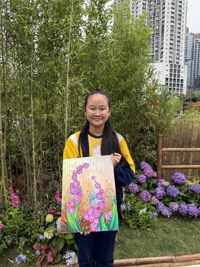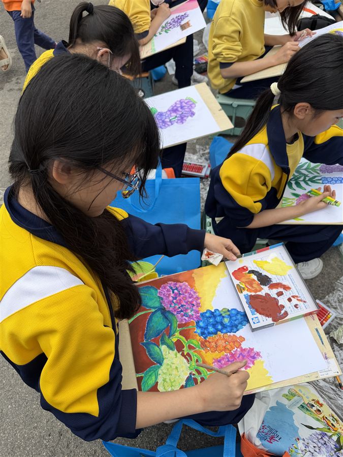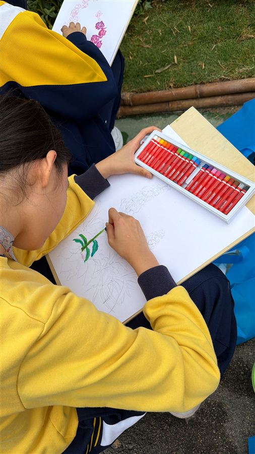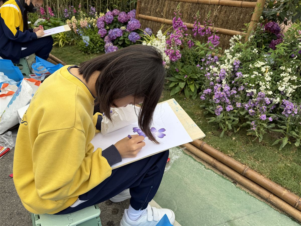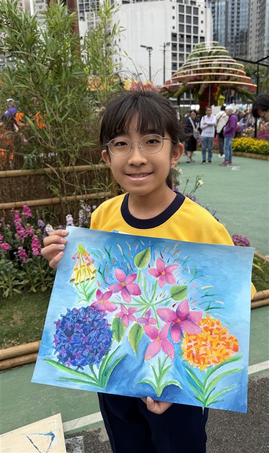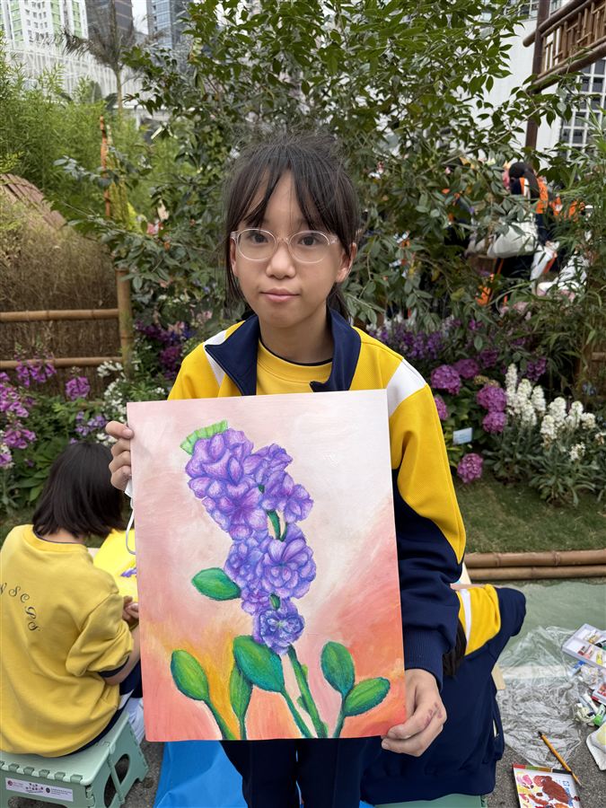本校視覺藝術優材同學早前前往維多利亞公園,參加「2026年賽馬會花卉展覽學童繪畫比賽」。當日陽光明媚,學生們在繁花似錦、姿態萬千的紫羅蘭花叢前,用心觀察並在三小時內描繪花卉的姿彩,展現出高超的藝術表現力。 恭喜6E林凱婷同學在全港約二千名小學生中脫穎而出,進入全港二十三名內,勇奪(高小組)嘉許獎,成績斐然!