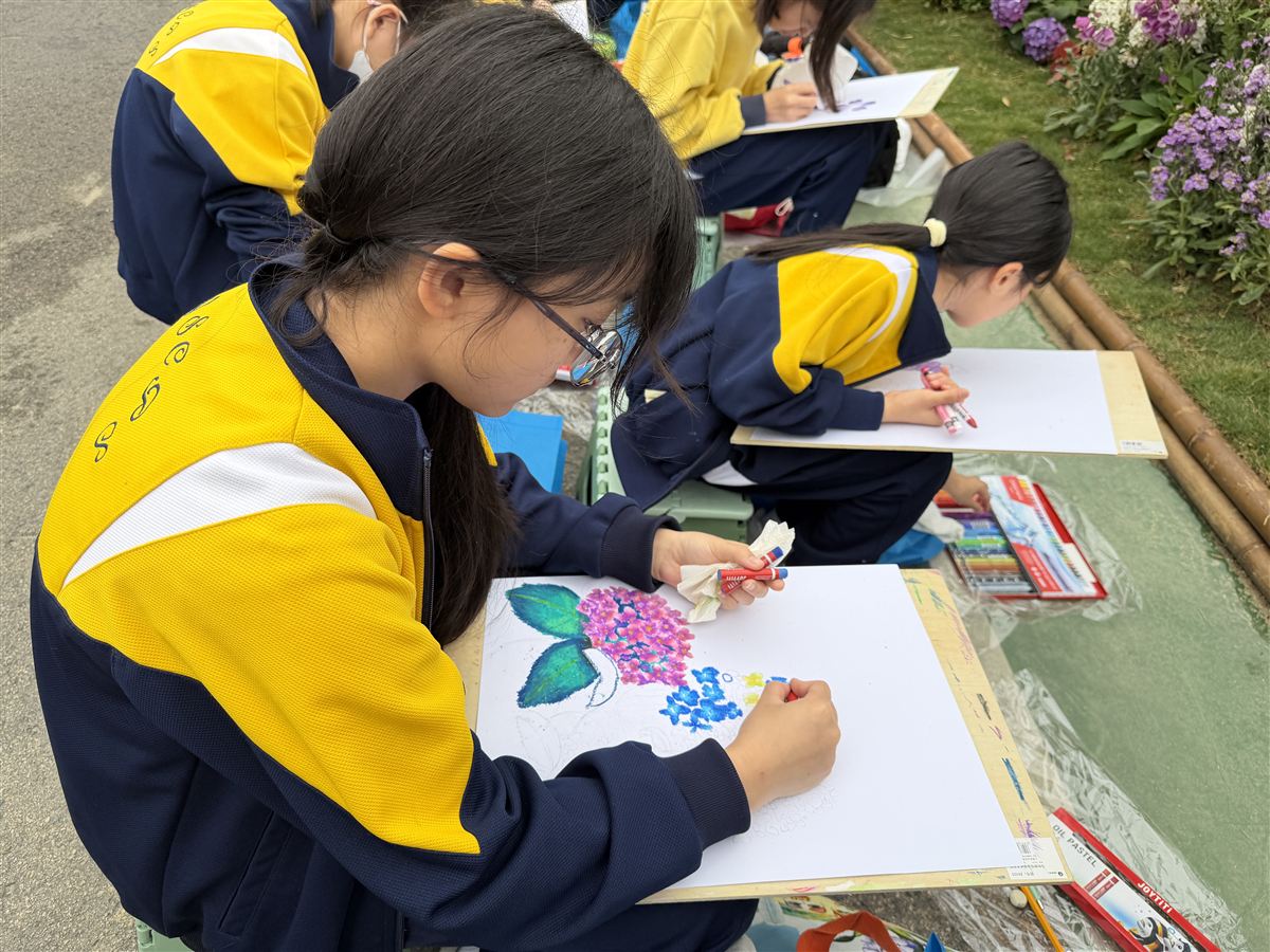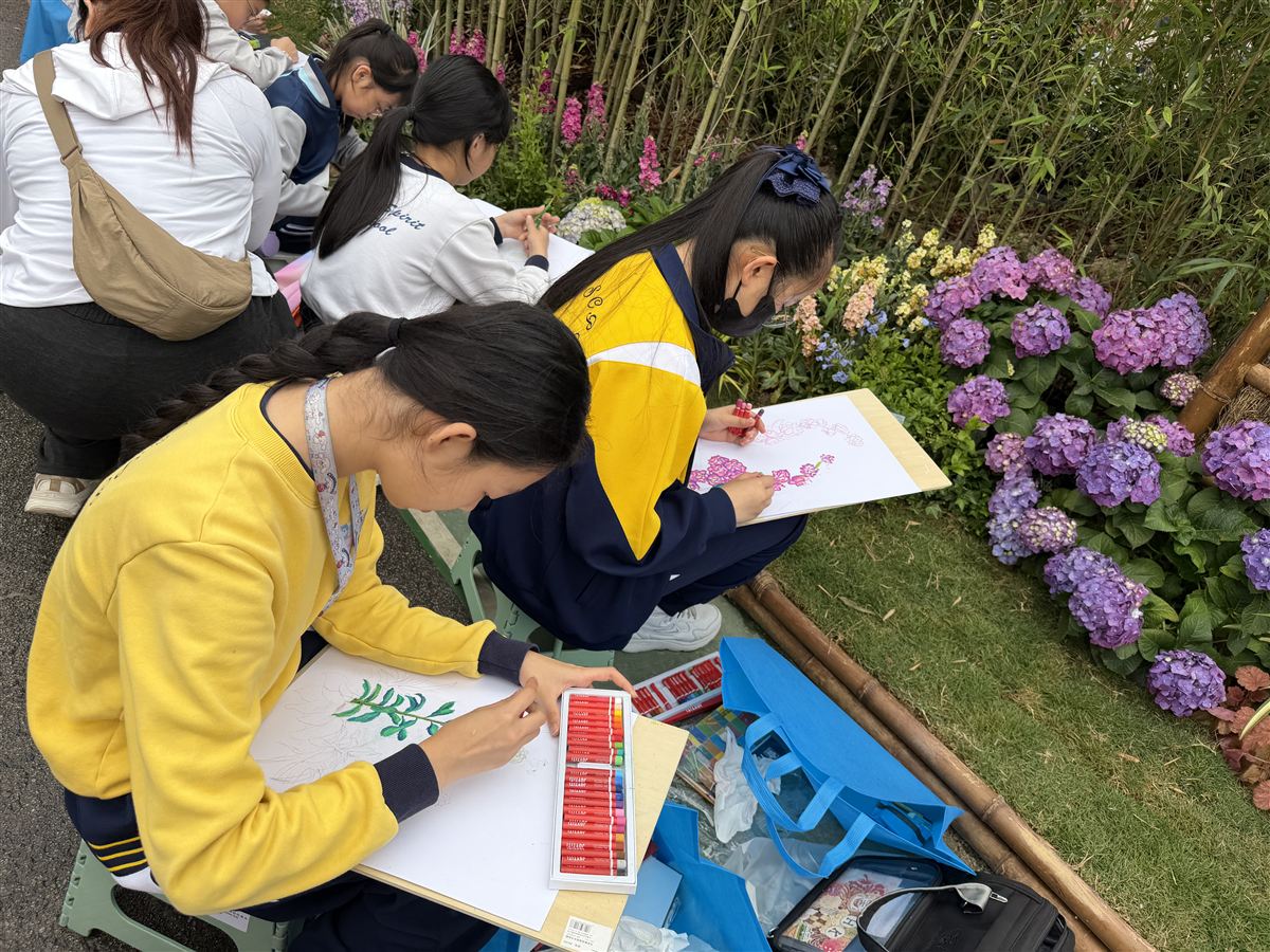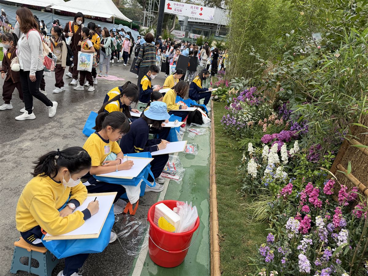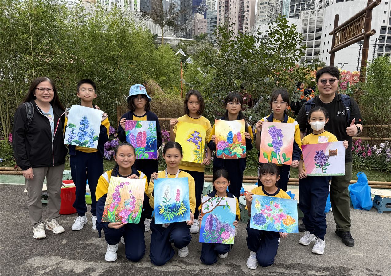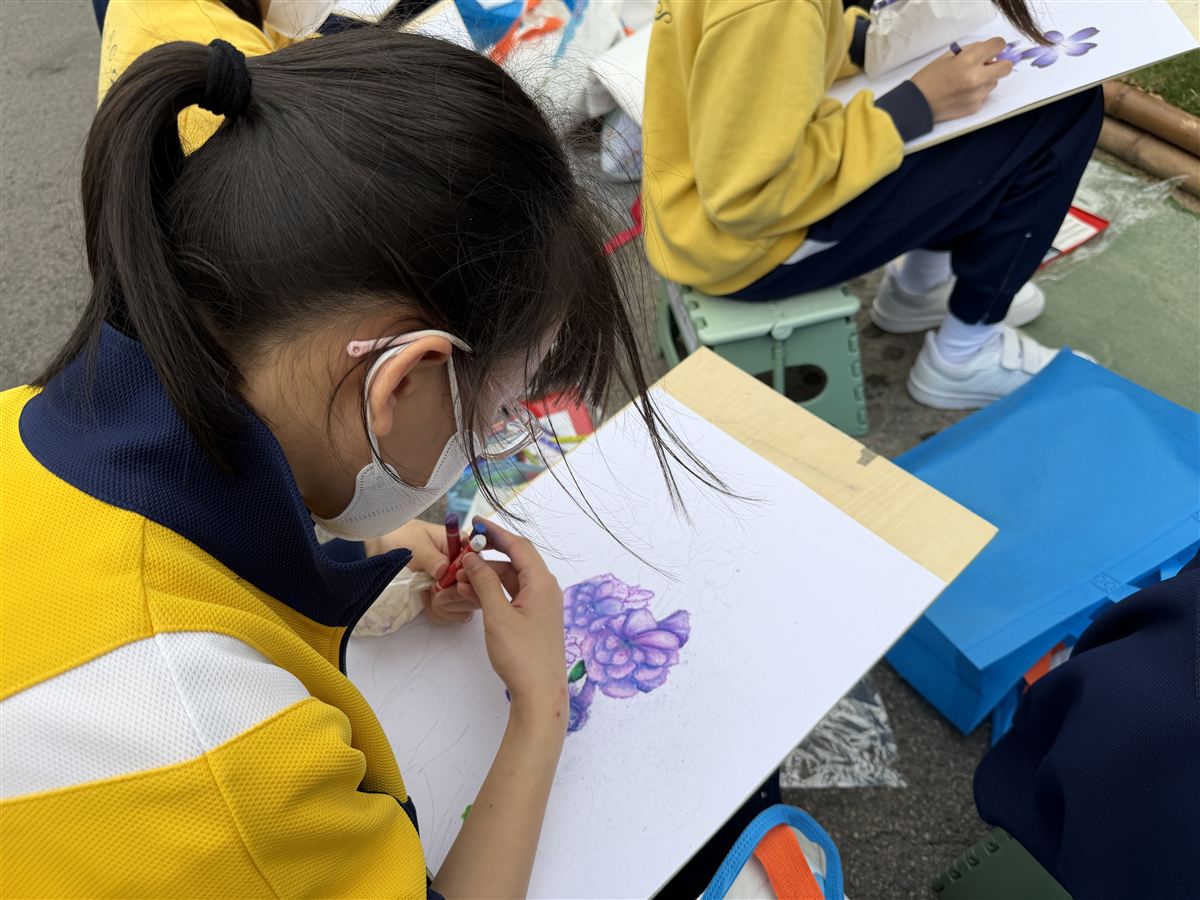 本校視覺藝術優材同學早前前往維多利亞公園,參加「2026年賽馬會花卉展覽學童繪畫比賽」。當日陽光明媚,學生們在繁花似錦、姿態萬千的紫羅蘭花叢前,用心觀察並在三小時內描繪花卉的姿彩,展現出高超的藝術表現力。 恭喜6E林凱婷同學在全港約二千名小學生中脫穎而出,進入全港二十三名內,勇奪(高小組)嘉許獎,成績斐然!