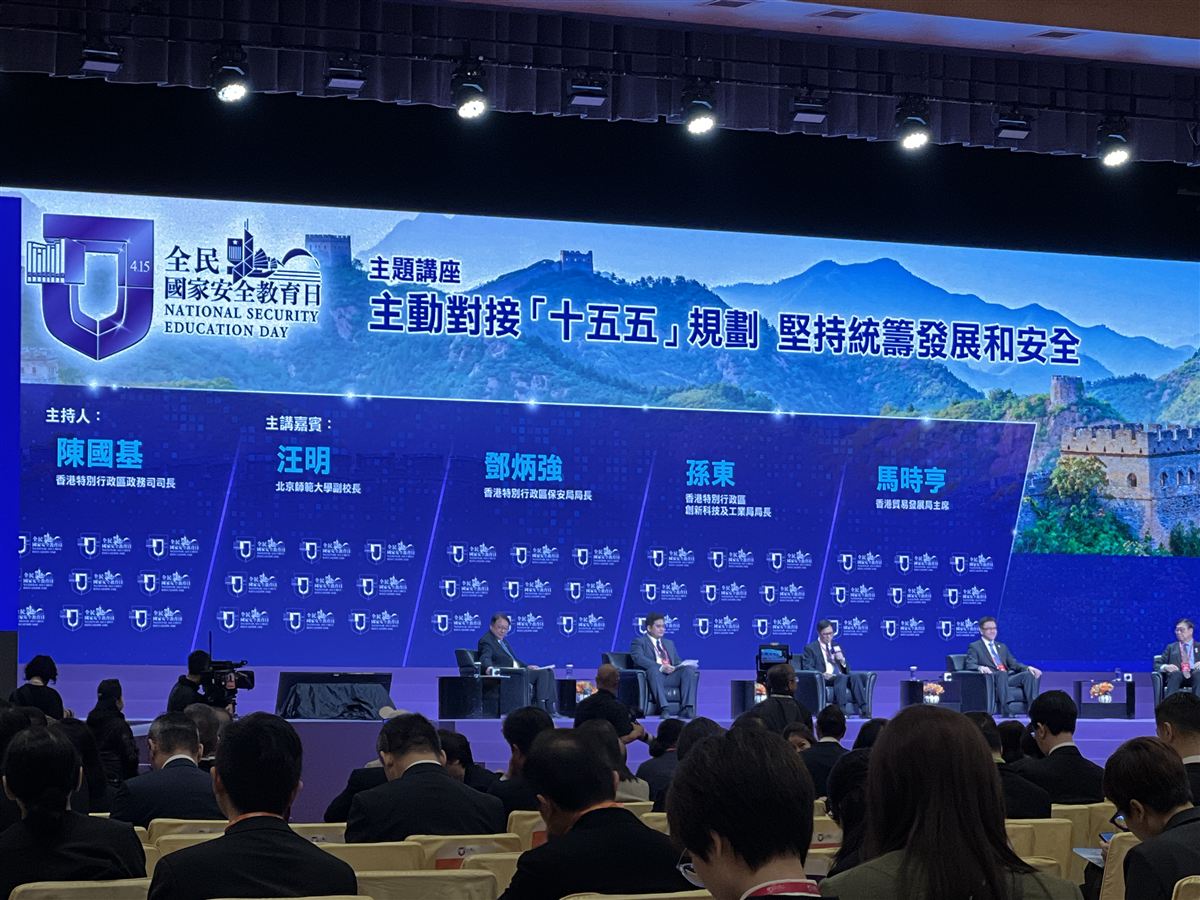 4月15日是「全民國家安全教育日」,本校有幸獲香港特別行政區維護國家安全委員會邀請,出席由香港特別行政區政府主辦,假香港會議展覽中心舉行的「全民國家安全教育日 開幕典禮暨主題講座」活動。當天共有8位本校《憲法》和《基本法》學生校園大使代表出席是次盛舉。活動主題為「主動對接『十五五』規劃 堅持統籌發展和安全」。 典禮上分別由中央港澳工作辦公室主任夏寶龍(視頻)、香港特別行政區行政長官李家超、中聯辦主任周霽、中央駐港國安公署署長董經緯、中國外交部駐港特派員公署特派員崔建春等致辭。同學透過主禮嘉賓致辭,認識並理解到國家安全乃國家發展的重要基石,以及香港如何主動對接國家「十五五」規劃,貢獻國家高質量發展。 此外,同學亦欣賞了由本中小學生演出的短劇《熱血東江 薪火相傳》,認識在香港淪陷期間,由中國共產黨領導的「東江縱隊港九獨立大隊」在港英勇抗日的光榮歷史,藉此銘記歷史、緬懷先烈、珍愛和平。適逢抗戰勝利80周年,典禮上亦安排了「向東江縱隊老戰士致敬」環節,讓同學們有機會向東江縱隊老戰士表達敬意。透過參與是次別具意義的國家安全教育活動,同學們對國家抗戰歷史及國家安全有了更深刻的理解。