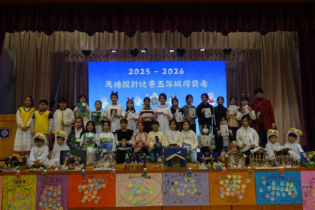 本年度聖誕祈禱會,老師藉著聖人聖尼各老的故事,帶出聖誕節的真諦在於與人分享,為人帶來希望。同學們透過製作幸福瓶,學會了珍惜自己所有,知足常樂,並由各班代表把心意卡及感恩卡掛在聖誕樹上,把幸福傳遞予社會上不同的人。禮儀中,學生代表更把明愛賣物會遊戲券及明愛慈善獎券籌得的善款,以及班際馬槽設計比賽獲獎作品,奉獻給耶穌作生日禮物。最後,由手鈴隊獻上兩首歌曲”Silent Night,Holy Night”及Peace”為祈禱會作結。