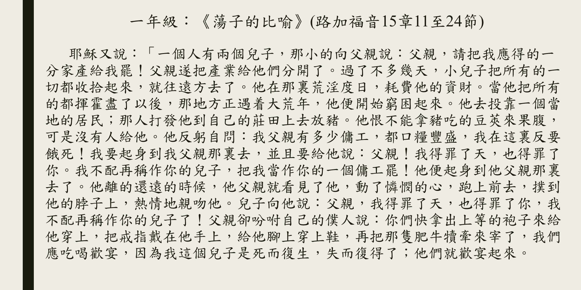 2023-2024宗教科耶穌的比喻繪畫比賽 (一年級)-《蕩子的比喻》(路15:1-24)