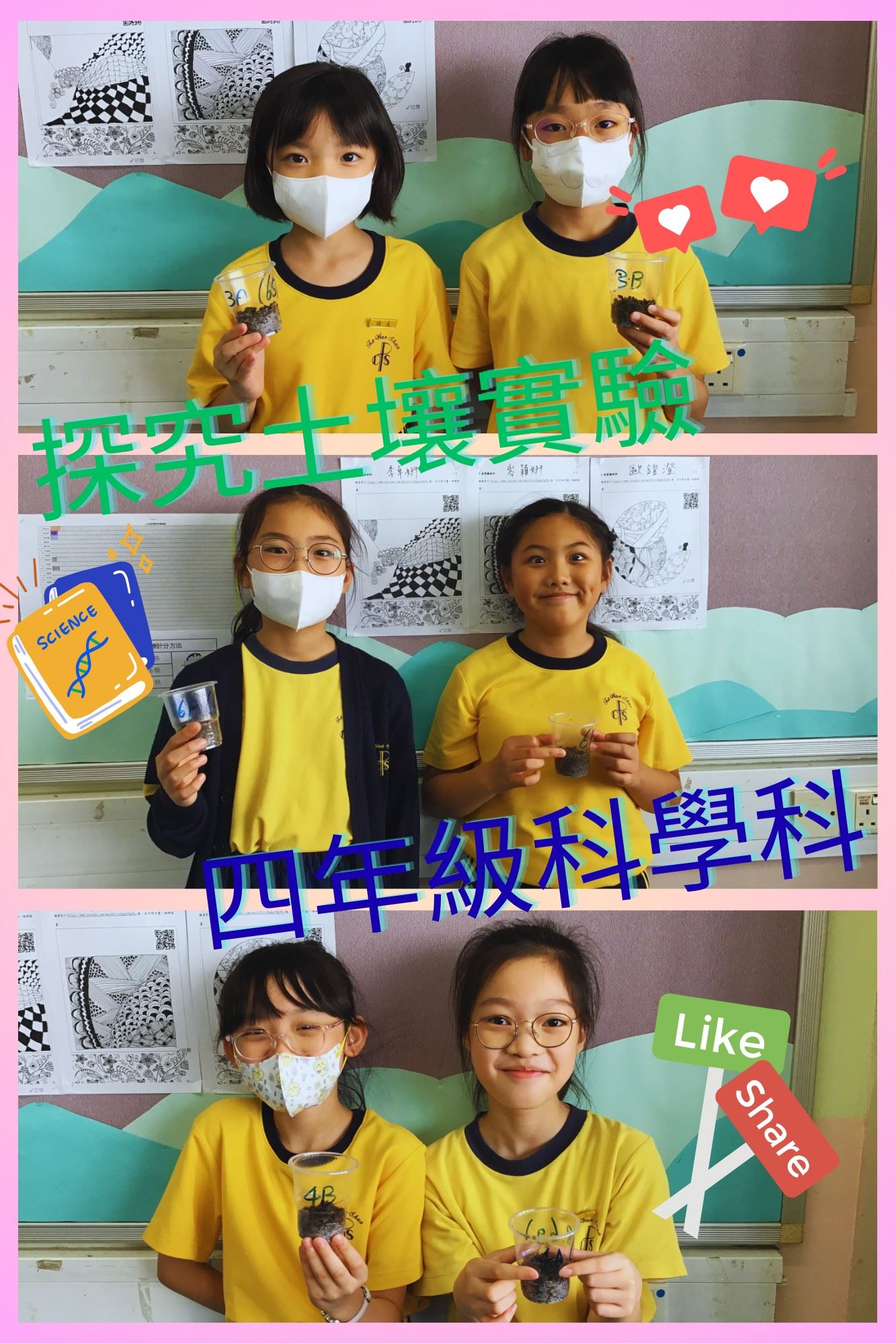 四年級科學科小慈和小天在學甚麼﹖本校的科學科強調基本科學知識,科學過程技能及共通能力的發展,讓學生能基於數據、邏輯,對探究的問題作出合理分析和推理,並提出個人的見解。這次小慈和小天透過動手實驗,觀察土壤中不同的組成元素,從而培養學生仔細進行科學觀察的習慣。