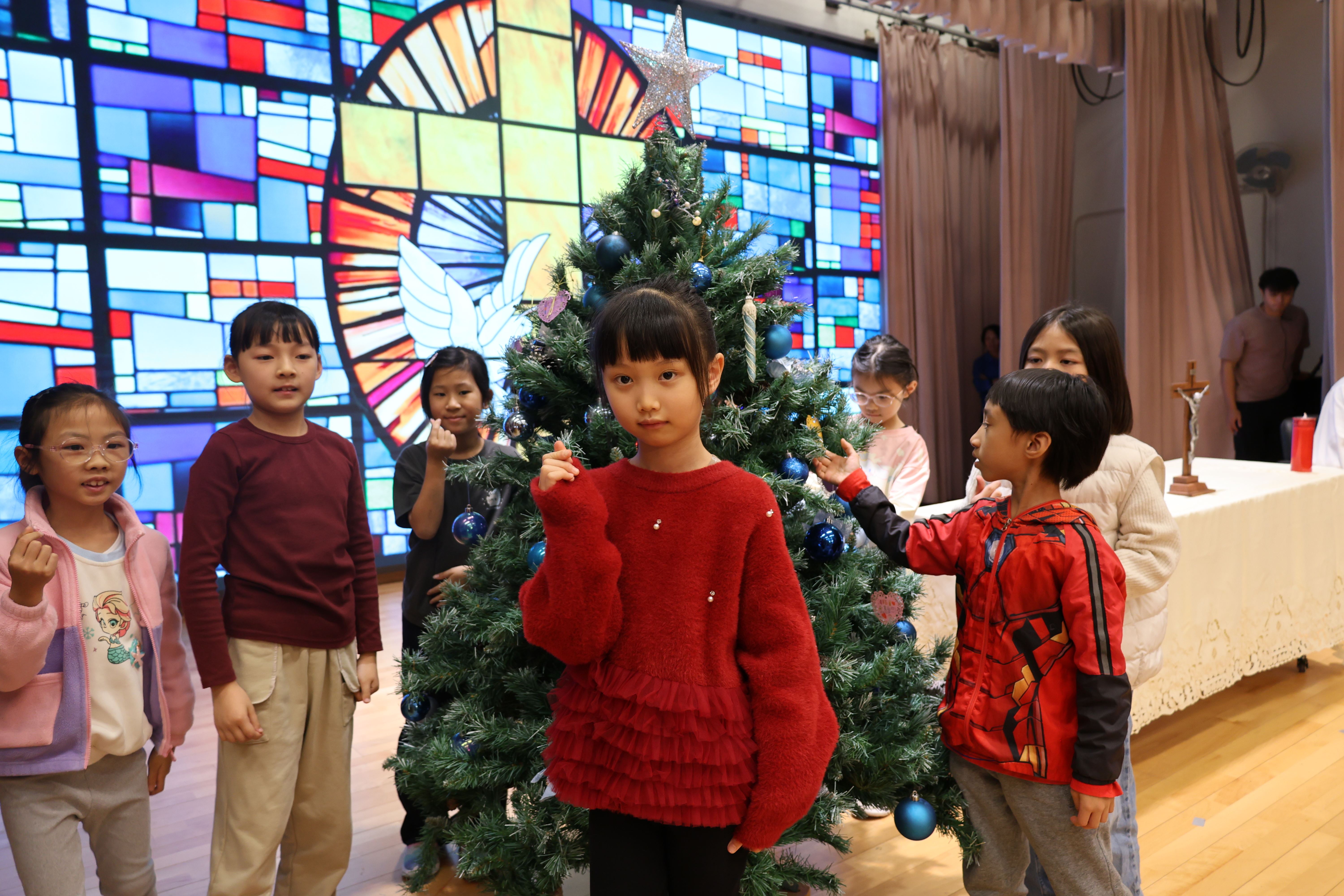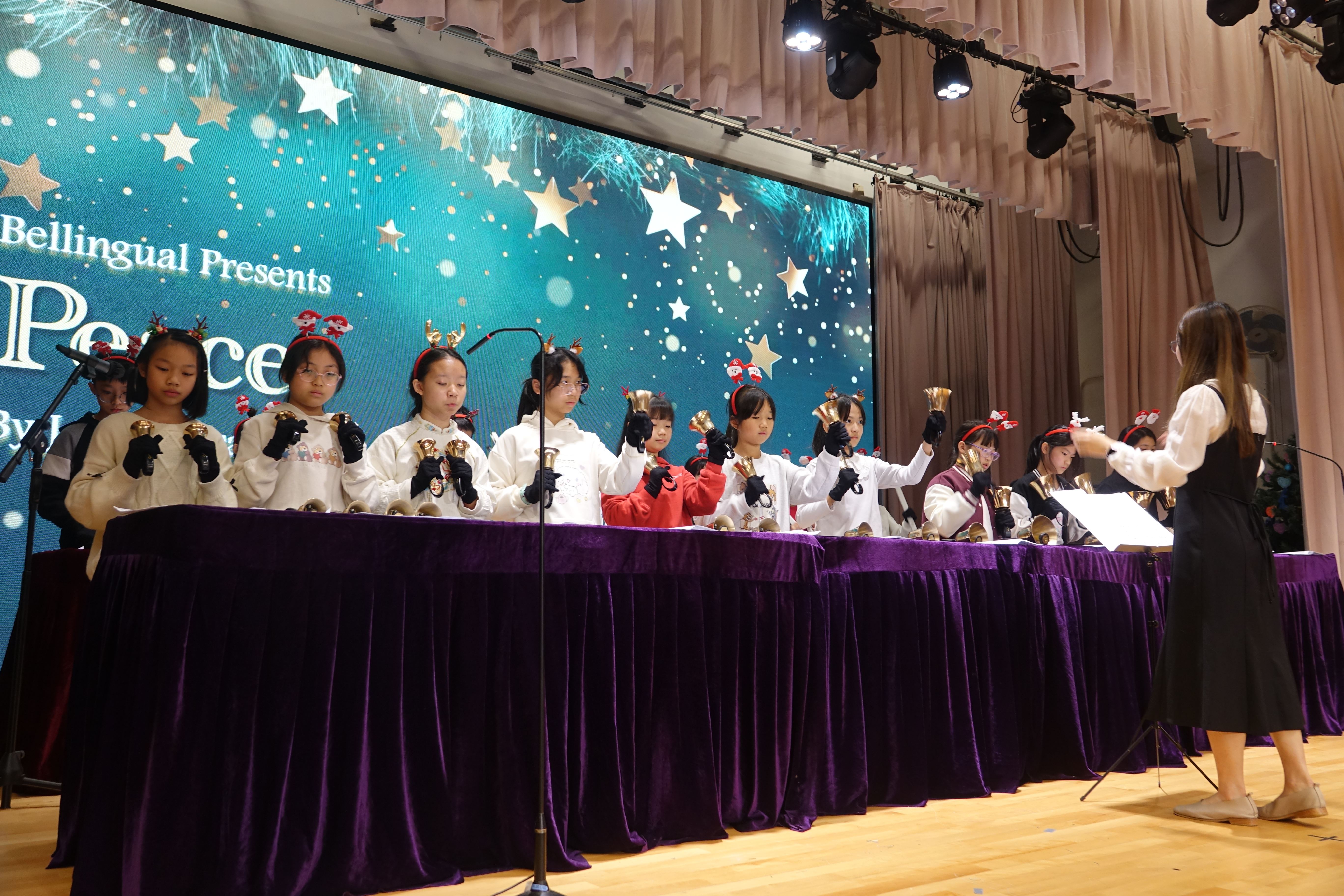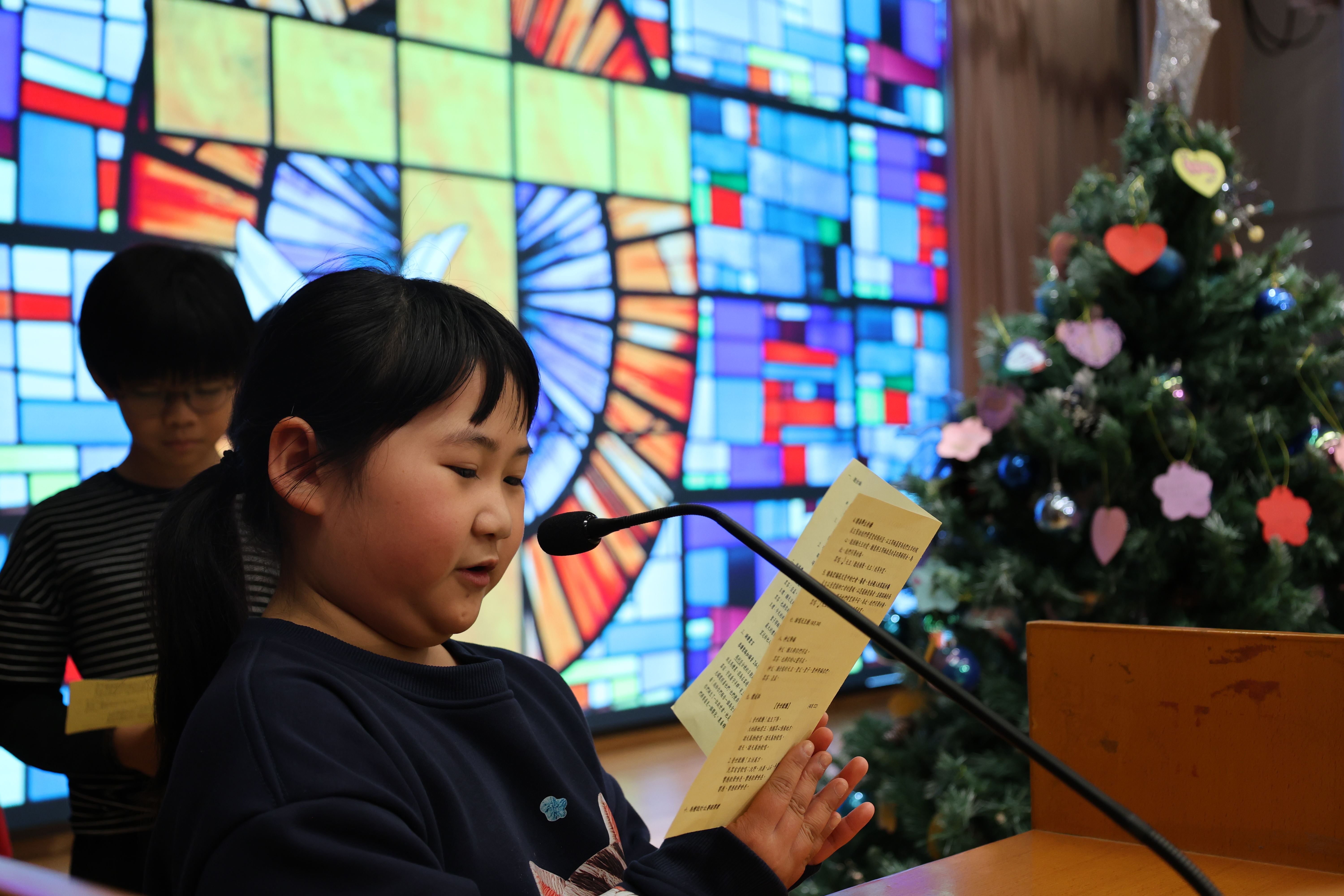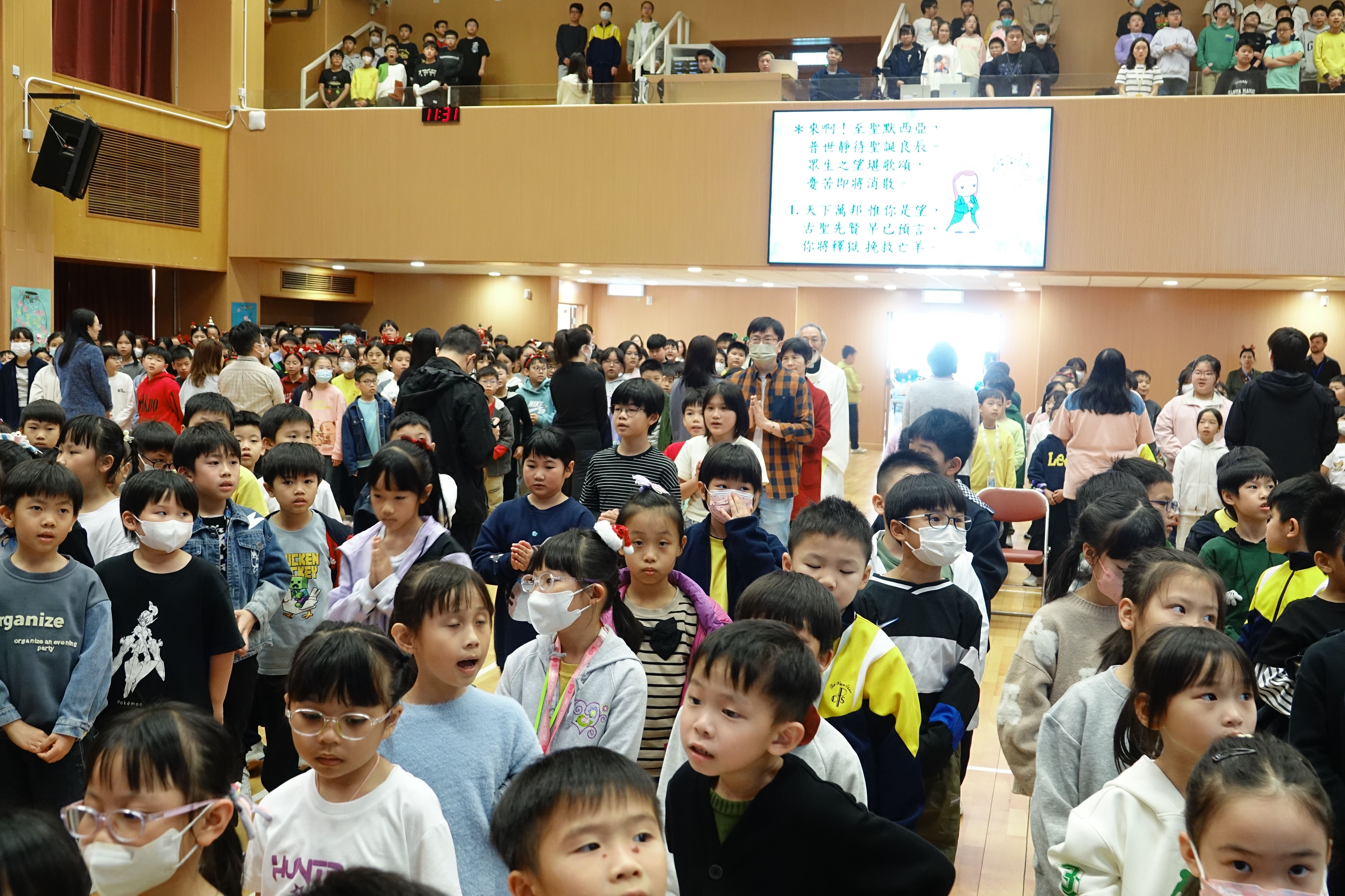 本年度聖誕祈禱會,老師藉著聖人聖尼各老的故事,帶出聖誕節的真諦在於與人分享,為人帶來希望。同學們透過製作幸福瓶,學會了珍惜自己所有,知足常樂,並由各班代表把心意卡及感恩卡掛在聖誕樹上,把幸福傳遞予社會上不同的人。禮儀中,學生代表更把明愛賣物會遊戲券及明愛慈善獎券籌得的善款,以及班際馬槽設計比賽獲獎作品,奉獻給耶穌作生日禮物。最後,由手鈴隊獻上兩首歌曲”Silent Night,Holy Night”及Peace”為祈禱會作結。