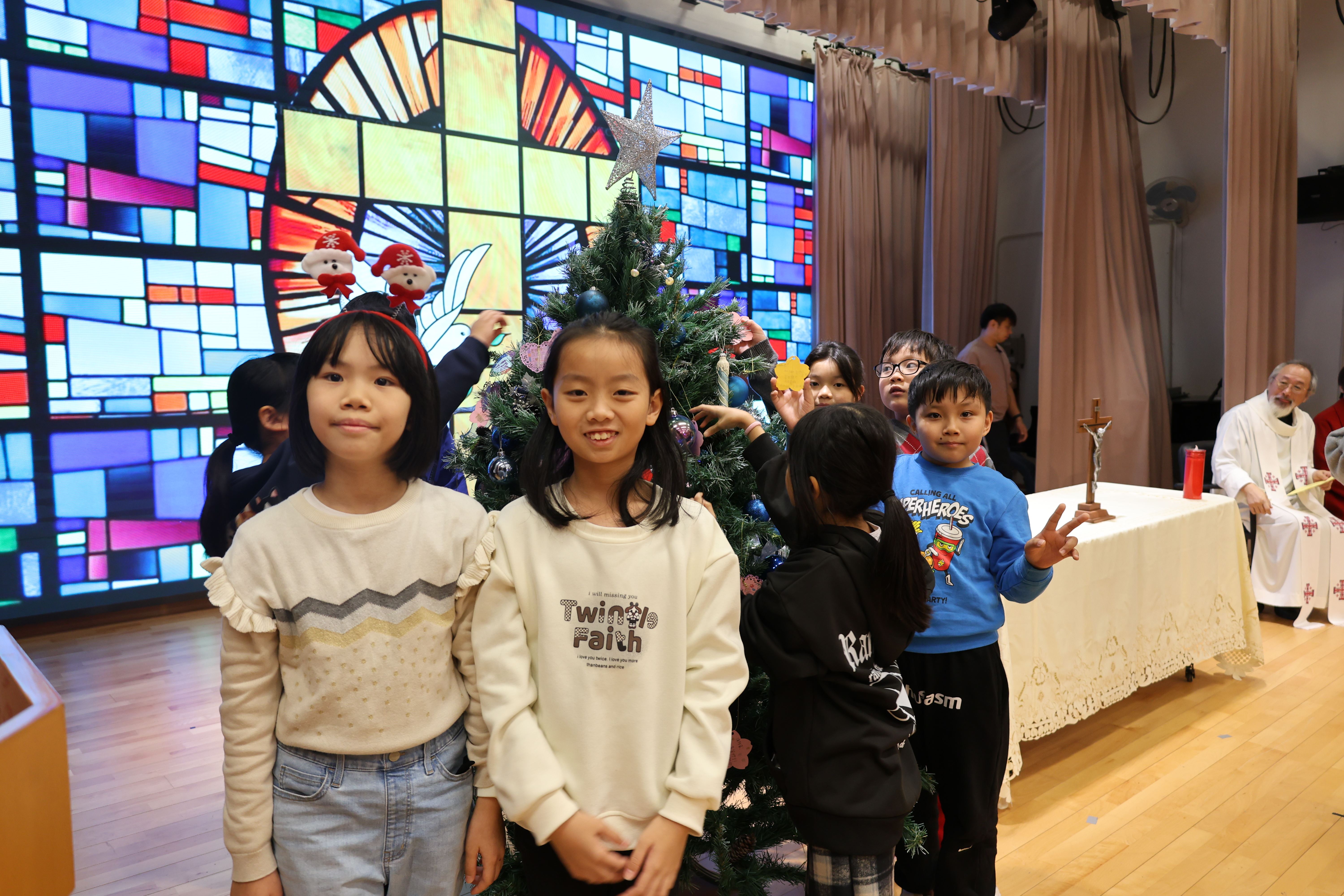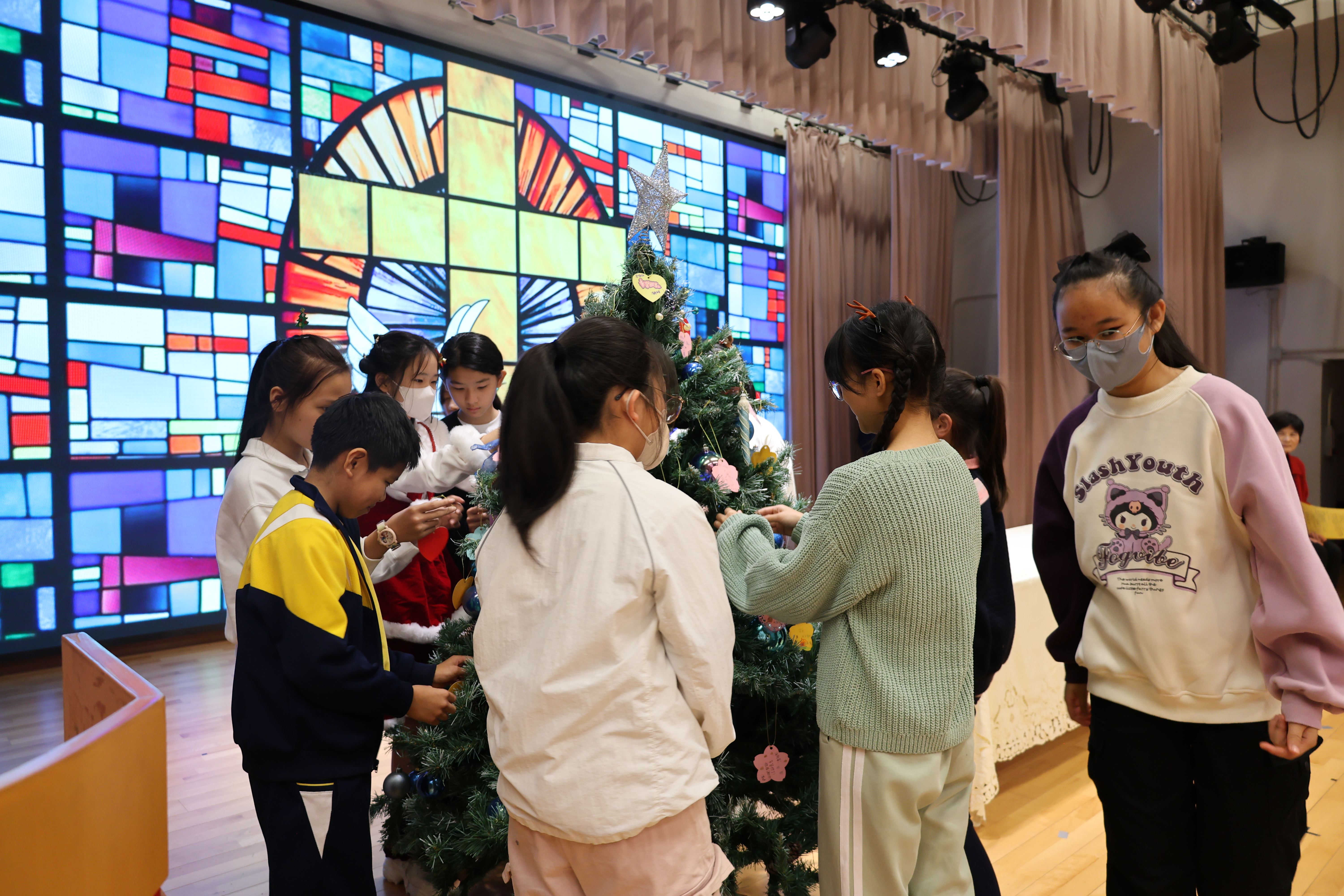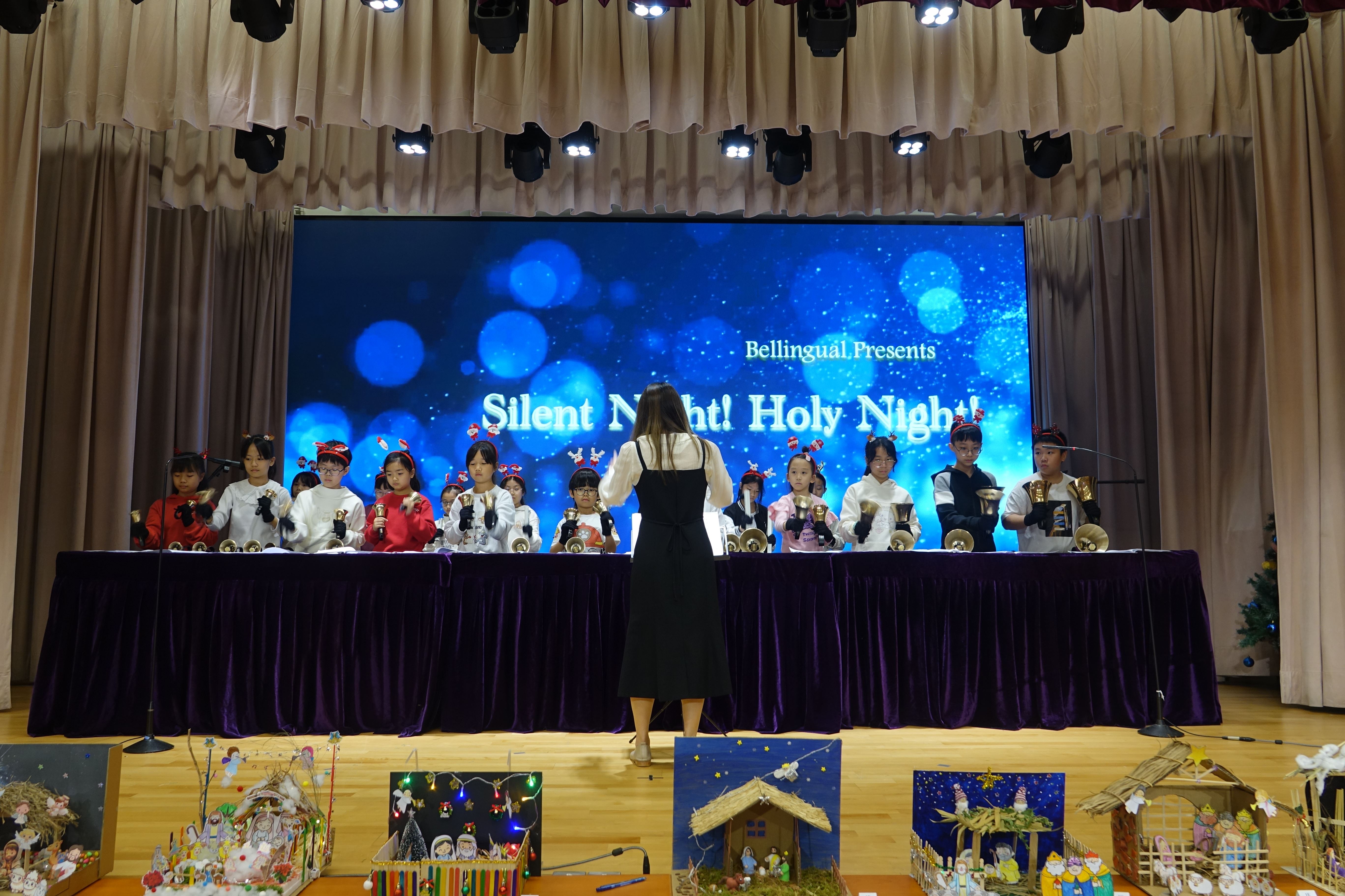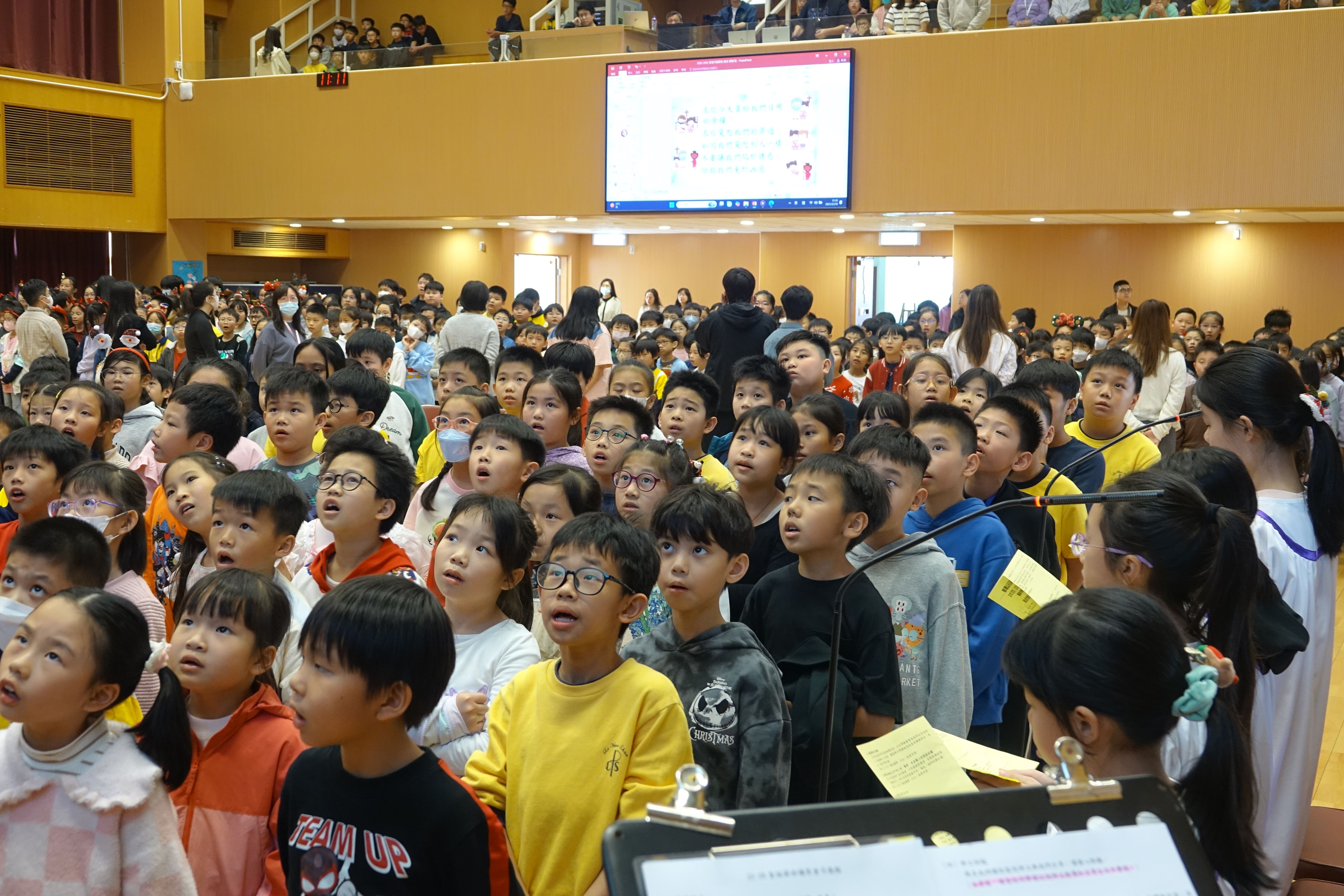 本年度聖誕祈禱會,老師藉著聖人聖尼各老的故事,帶出聖誕節的真諦在於與人分享,為人帶來希望。同學們透過製作幸福瓶,學會了珍惜自己所有,知足常樂,並由各班代表把心意卡及感恩卡掛在聖誕樹上,把幸福傳遞予社會上不同的人。禮儀中,學生代表更把明愛賣物會遊戲券及明愛慈善獎券籌得的善款,以及班際馬槽設計比賽獲獎作品,奉獻給耶穌作生日禮物。最後,由手鈴隊獻上兩首歌曲”Silent Night,Holy Night”及Peace”為祈禱會作結。