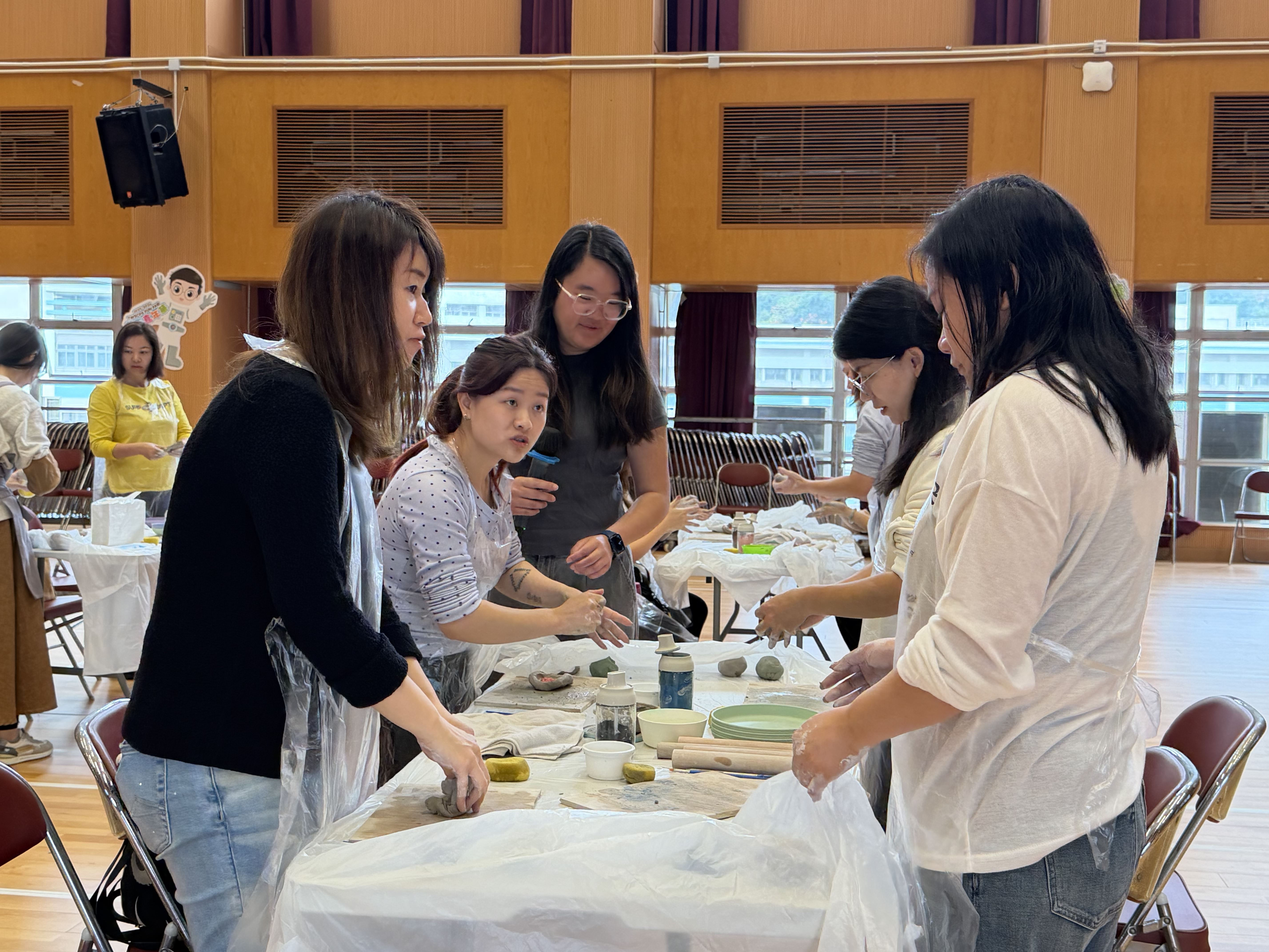 本校家長教師會舉辦「手捏花碟陶藝體驗」家長工作坊。家長以手捏陶泥創作自己的作品,過程療愈心靈,紓解壓力,透過藝術創作享受專屬的寧靜時光,為家長在育兒路上增添力量