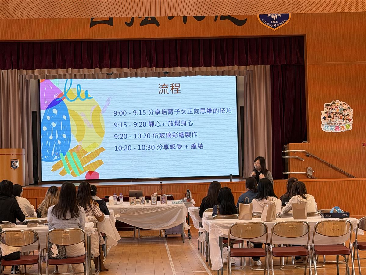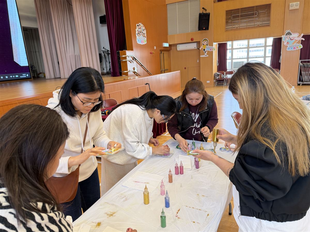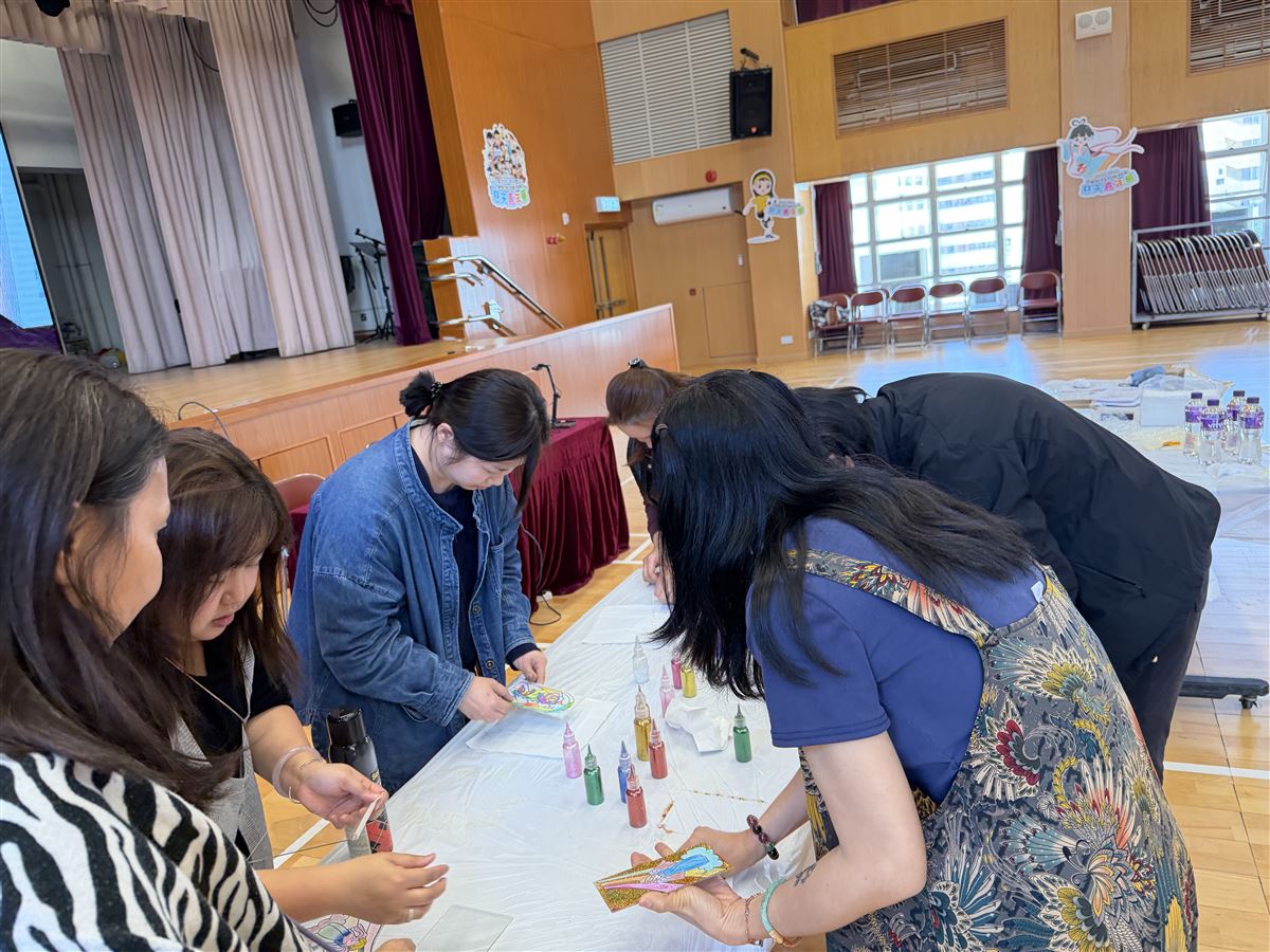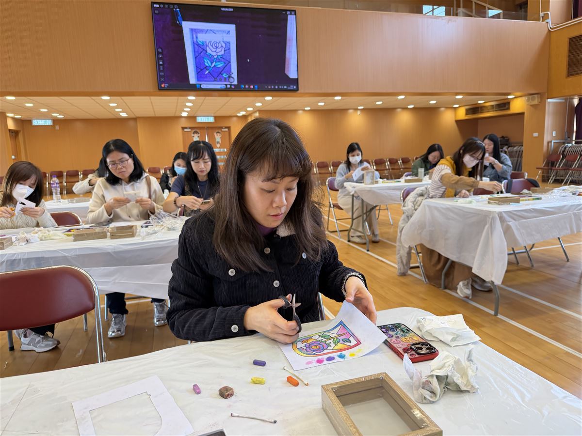 本校家長教師會邀請【香港小童群益會家庭生活教育組】到校主持「日本結晶之花藝仿玻璃彩繪」家長工作坊。讓家長放下繁忙的日常事務,透過創意藝術活動,放鬆心情,並透過社工的分享和鼓勵,提升家長正面的管教能量。