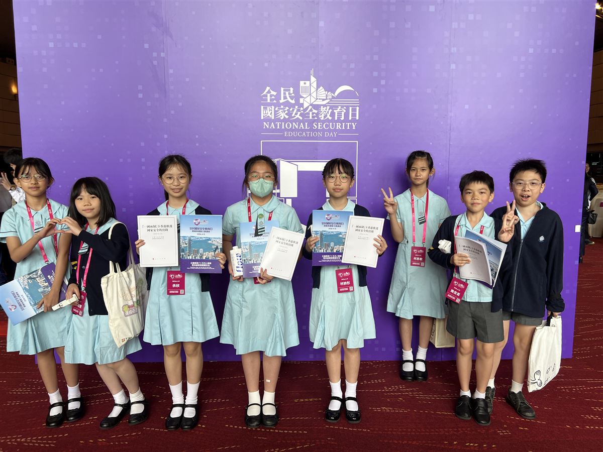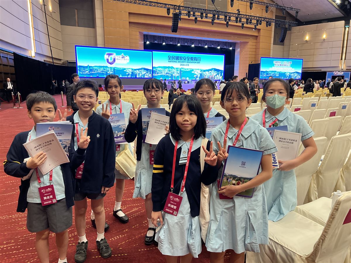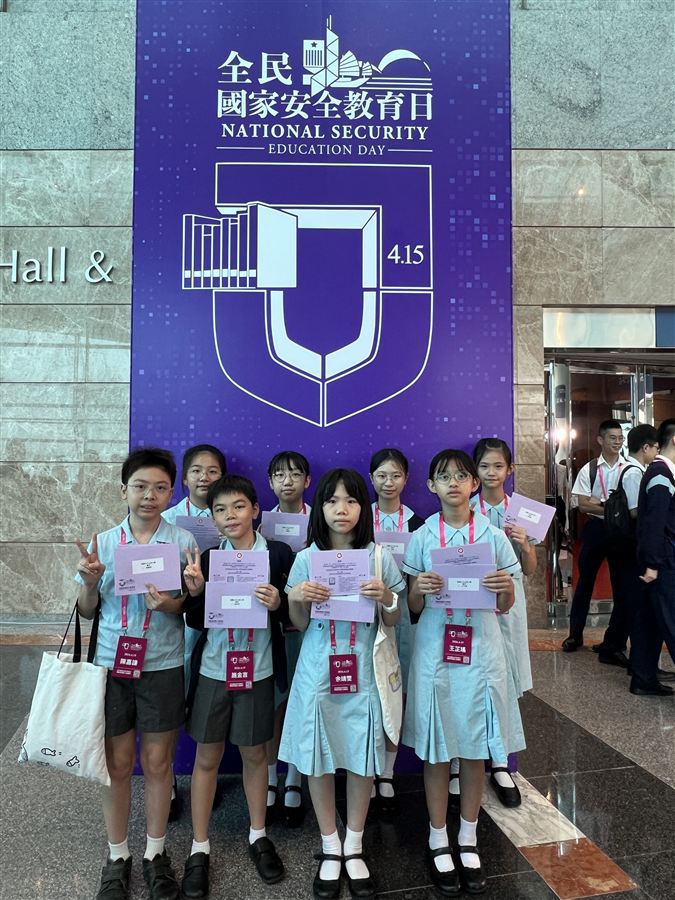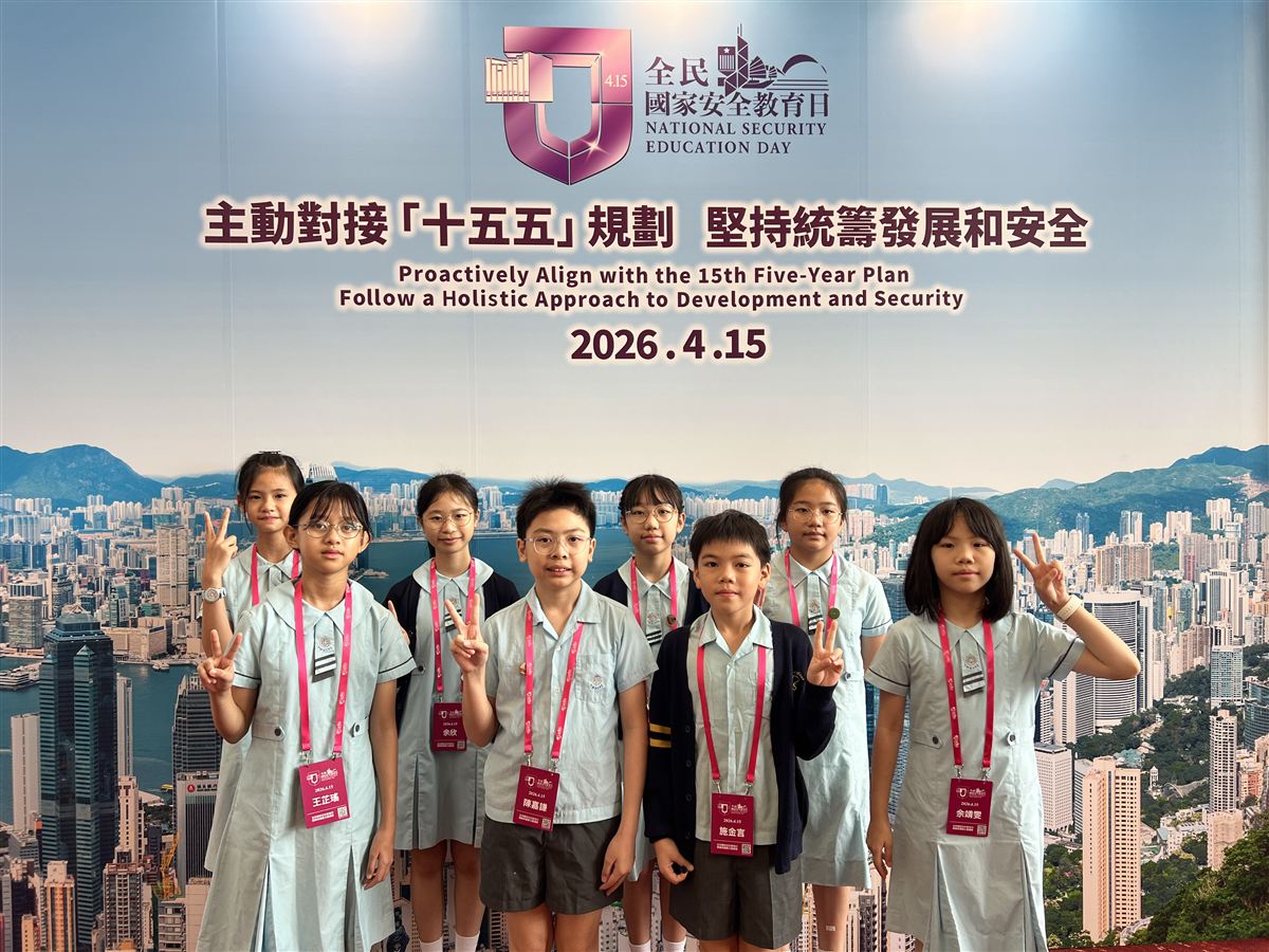 4月15日是「全民國家安全教育日」,本校有幸獲香港特別行政區維護國家安全委員會邀請,出席由香港特別行政區政府主辦,假香港會議展覽中心舉行的「全民國家安全教育日 開幕典禮暨主題講座」活動。當天共有8位本校《憲法》和《基本法》學生校園大使代表出席是次盛舉。活動主題為「主動對接『十五五』規劃 堅持統籌發展和安全」。 典禮上分別由中央港澳工作辦公室主任夏寶龍(視頻)、香港特別行政區行政長官李家超、中聯辦主任周霽、中央駐港國安公署署長董經緯、中國外交部駐港特派員公署特派員崔建春等致辭。同學透過主禮嘉賓致辭,認識並理解到國家安全乃國家發展的重要基石,以及香港如何主動對接國家「十五五」規劃,貢獻國家高質量發展。 此外,同學亦欣賞了由本中小學生演出的短劇《熱血東江 薪火相傳》,認識在香港淪陷期間,由中國共產黨領導的「東江縱隊港九獨立大隊」在港英勇抗日的光榮歷史,藉此銘記歷史、緬懷先烈、珍愛和平。適逢抗戰勝利80周年,典禮上亦安排了「向東江縱隊老戰士致敬」環節,讓同學們有機會向東江縱隊老戰士表達敬意。透過參與是次別具意義的國家安全教育活動,同學們對國家抗戰歷史及國家安全有了更深刻的理解。